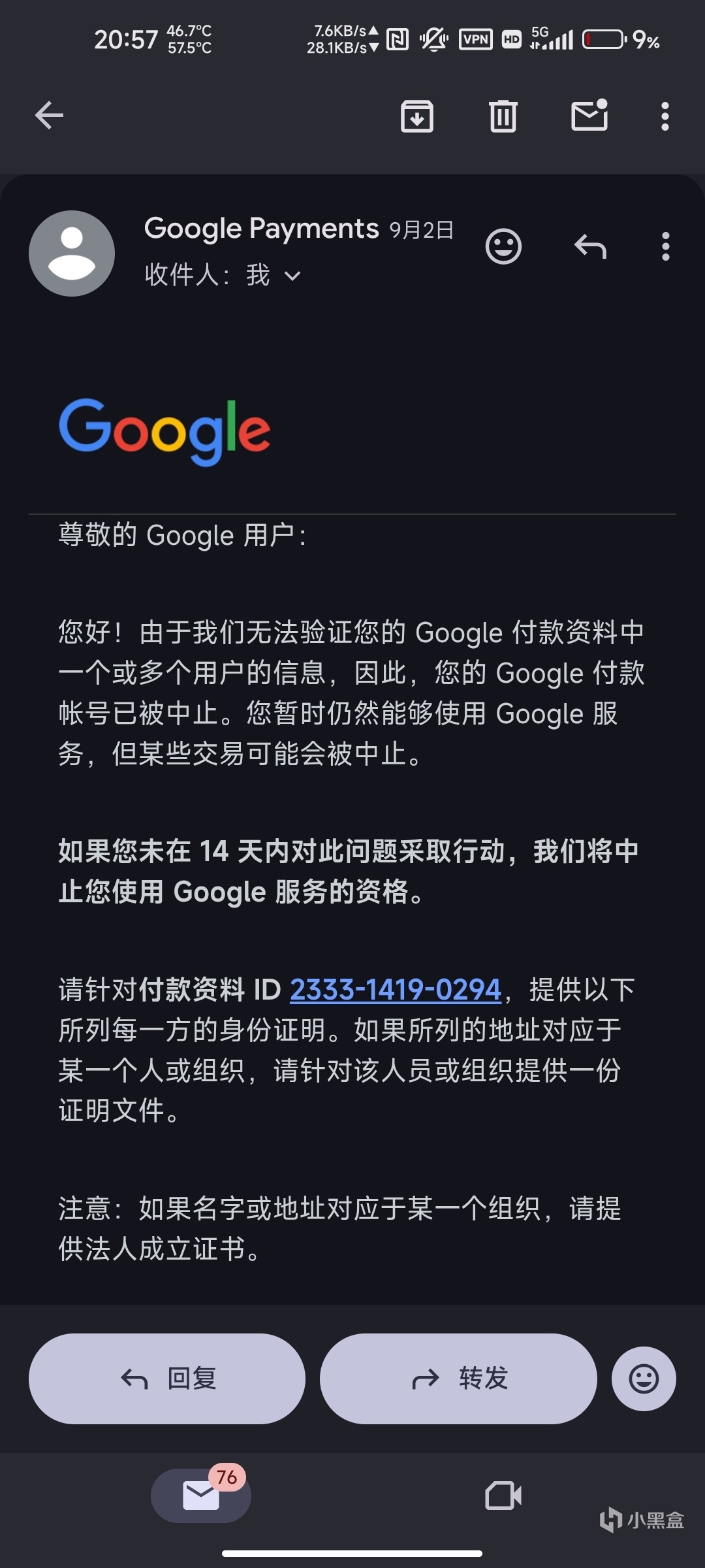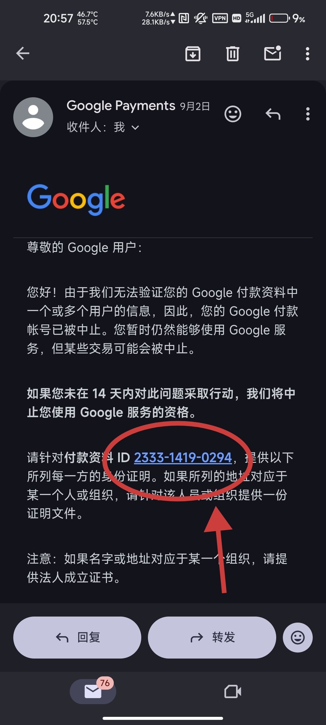 受影响的Google服务那一栏选择“Google Pay”(也可以选择“其他”后输入Google Payments)