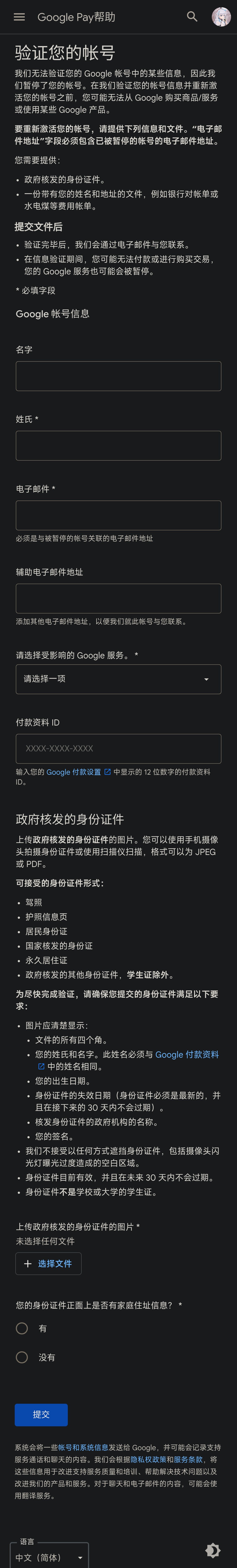点开“提供身份证明”的选项,打开了Google Payments的网页,然后跳出来一个对话框,要求我必须提供一个身份证明,可以选择提交一份付款证明