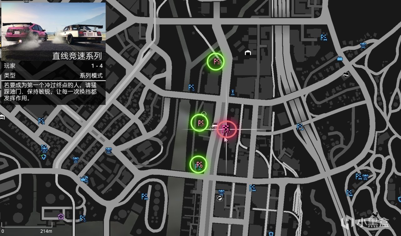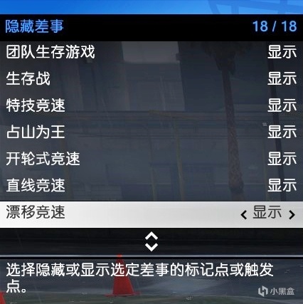 1.按M打开互动菜单——偏好——地图标记点选项,将漂移/追逐/街头/直线竞速设置为显示。