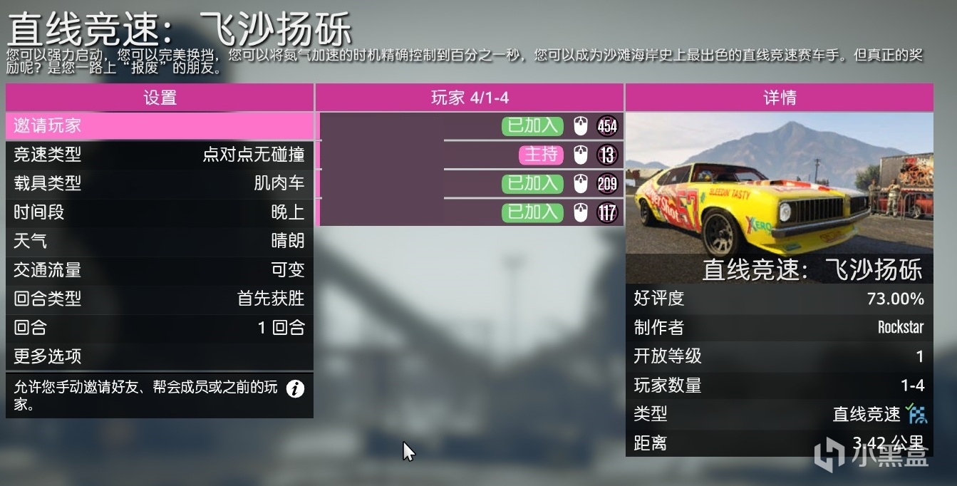 车友会系列竞速:ESC-在线-差事-进行差事-R星制作-竞速-漂移/追逐/街头/直线竞速。