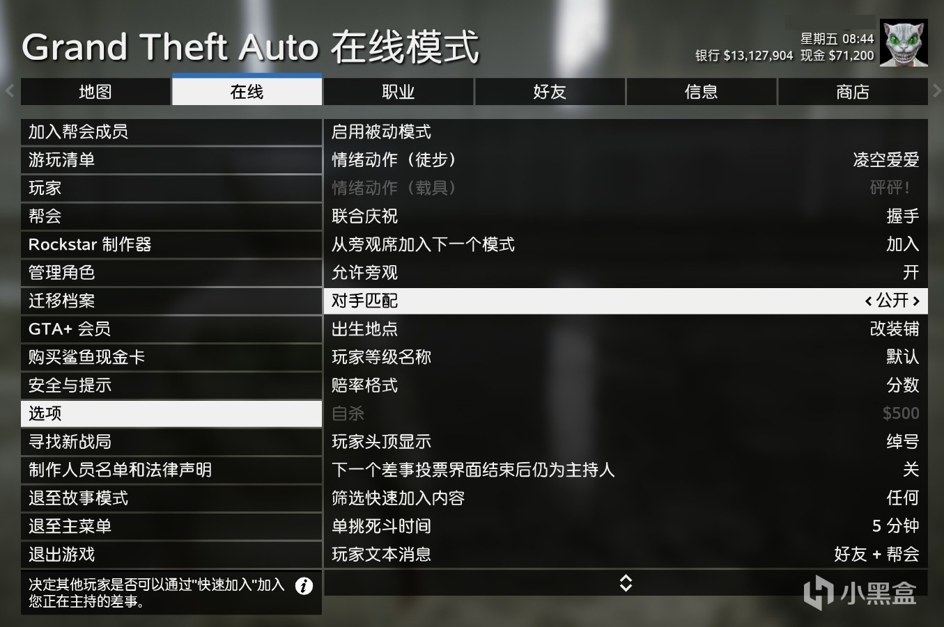 2.按ESC打开暂停菜单——在线——选项——对手匹配设置为“公开”。