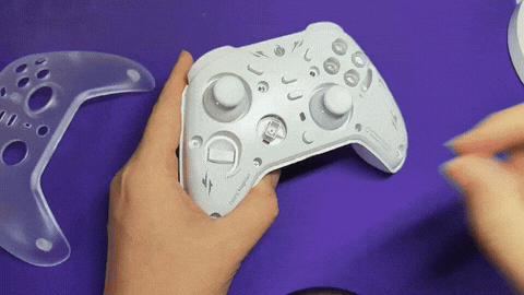 手柄本体是纯白为主色调,魔术师的外壳采用的是可替换磁吸快拆设计,并且表面磨砂处理很柔和,我上手触感是一种比较细腻但又有点阻尼,不会有粗糙感。