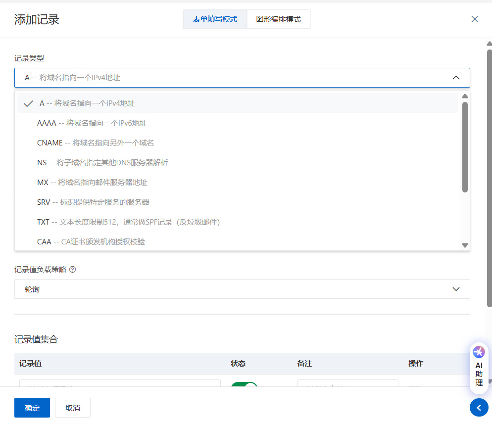 可以选择指向ipv4地址,或者其他地址如图所示内容。这里选择ipv4地址。