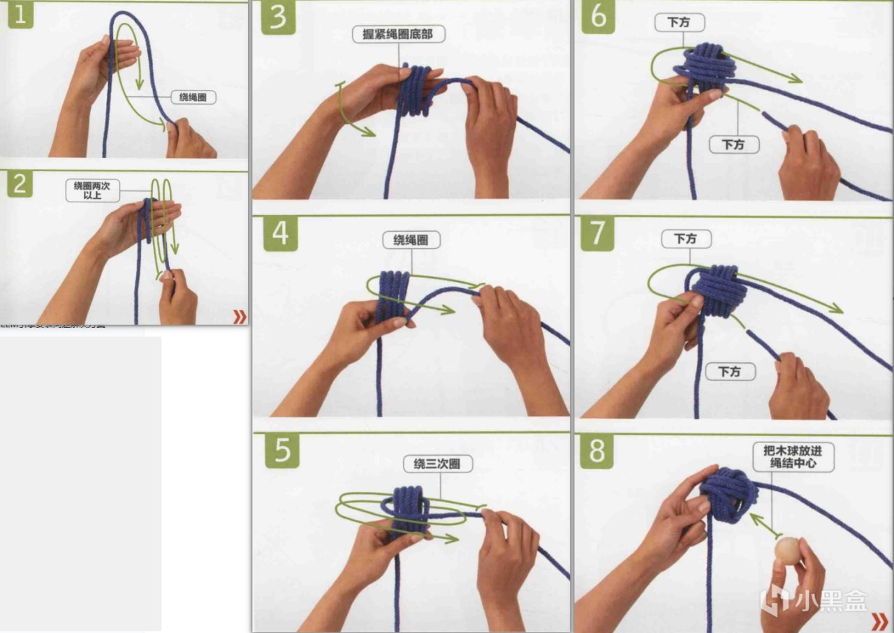 当作为钥匙链这种装饰性绳结时,可以在绳结中放一个木球增加重量。