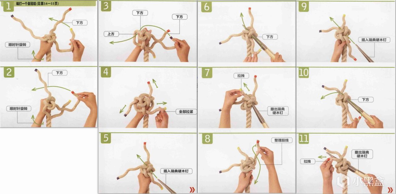 结合皇冠结的打法,可以制作扶手结等其他装饰性绳结。
