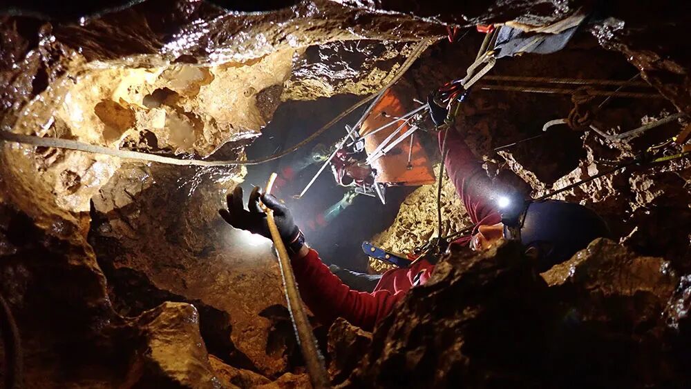 不過,悲慘的死亡並非唯一吸引大家去看的因素,很多探洞事故視頻最後,遇難者都成功脫險了。比如2014年發生在德國的裏森丁救援事件,一名專業洞穴探險家在探索阿爾卑斯山脈時,被困在了深度1100多米的洞穴內。這個洞穴的地勢極爲險峻,很多地方連攀巖高手都爬不上去,雪上加霜的是,這名探險家的頭還因爲落石受傷了。