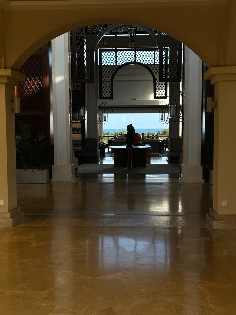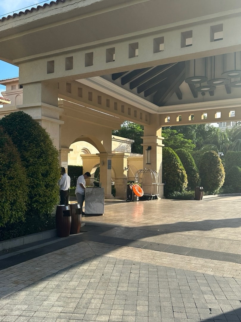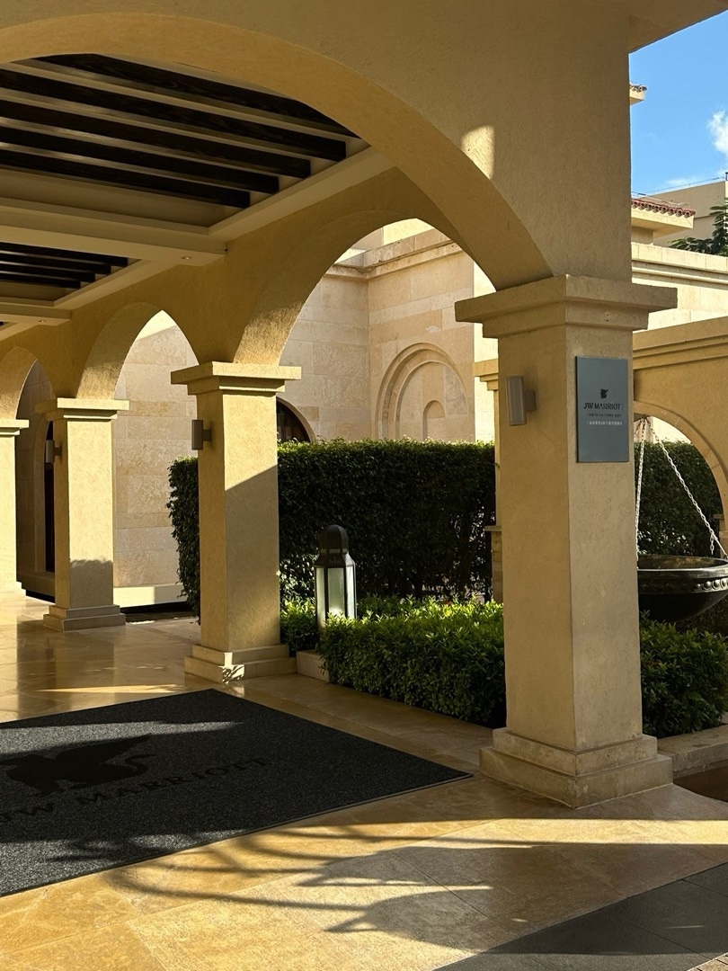 这家原来是luxury collection,后来效益不好改为jw,整体都是西班牙风格,lz到的时候是下午五点,夕阳正好,整片建筑呈现米黄色的光辉,十分好看。