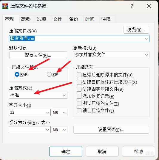 3、这里可以选择压缩文件格式,RAR或者ZIP