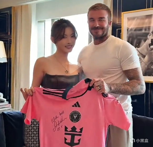 此次貝克漢姆現身澳門站活動,聶小雨不僅與他見面,還一同拍攝了視頻。視頻裏,聶小雨難掩興奮之情,和貝克漢姆親密合影,貝克漢姆還特意送上一件親筆簽名的邁阿密國際球衣。