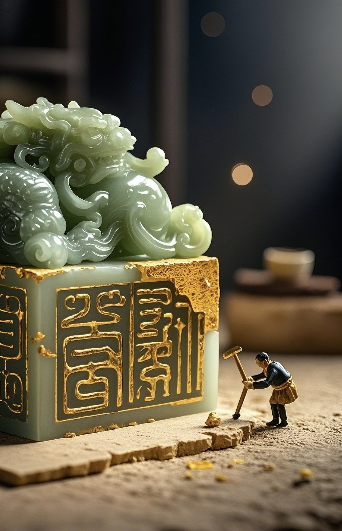 王莽得到這方殘璽後,惜其破損(也爲了證明自己皇位的正統),遂命能工巧匠以黃金精心鑲嵌修補,這便是“金鑲玉”技藝的傳奇起源。這處金鑲的殘缺,也因此成爲王朝更迭、權力暴力交替的永恆見證。