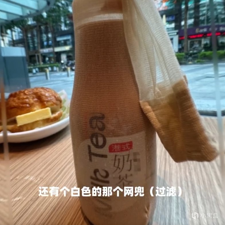 这款饮品正是港式茶餐厅常见的丝袜奶茶。不过常喝的人都知道,传统港式丝袜奶茶名字里的 “丝袜”,指的是反复过滤茶叶后,白色滤网染上茶色像丝袜,并不是真的用丝袜来制作。这家店的工作人员也解释,他们家丝袜奶茶的制作过程很正规,都是用白色网兜过滤茶汤,和传统做法一致,并没有用真丝袜参与制作。