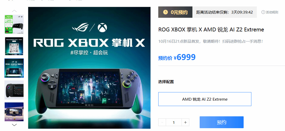 微軟與華碩合作推出的Xbox Ally X掌機國行版已開啓預約,定價6999元,將於10月16日21點正式首發。