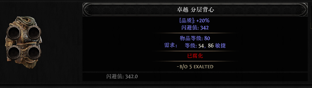 第二种专属附魔:为装备附加独有的腐化词缀(如技能增伤、抗性加成),想要具体了解的可以在流放之路编年史的已腐化词条中查询具体效果。
