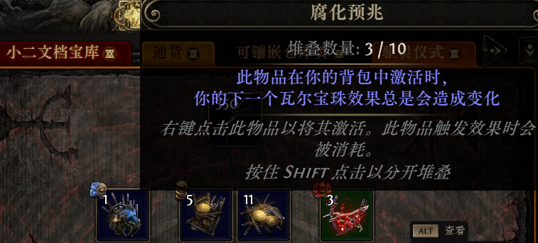 最后小二还是想提醒一下,(瓦)腐化前一定要检查!确保物品基础属性达标(如高物品等级、核心词缀已锁定),避免对低基础的装备浪费宝珠。