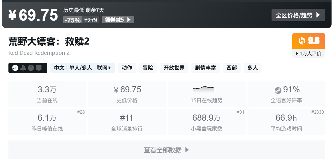 1.《荒野大鏢客:救贖2》