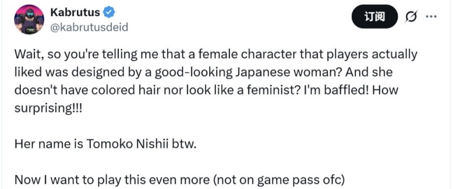 翻译:等等,你是说一个玩家们真正喜欢的女性角色,居然是由一位相貌出众的日本女性设计的?而且她既没有染发,我真是百思不得其解!太让人惊讶了!!!