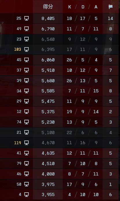 游戏里按Tab即可看到得分左边