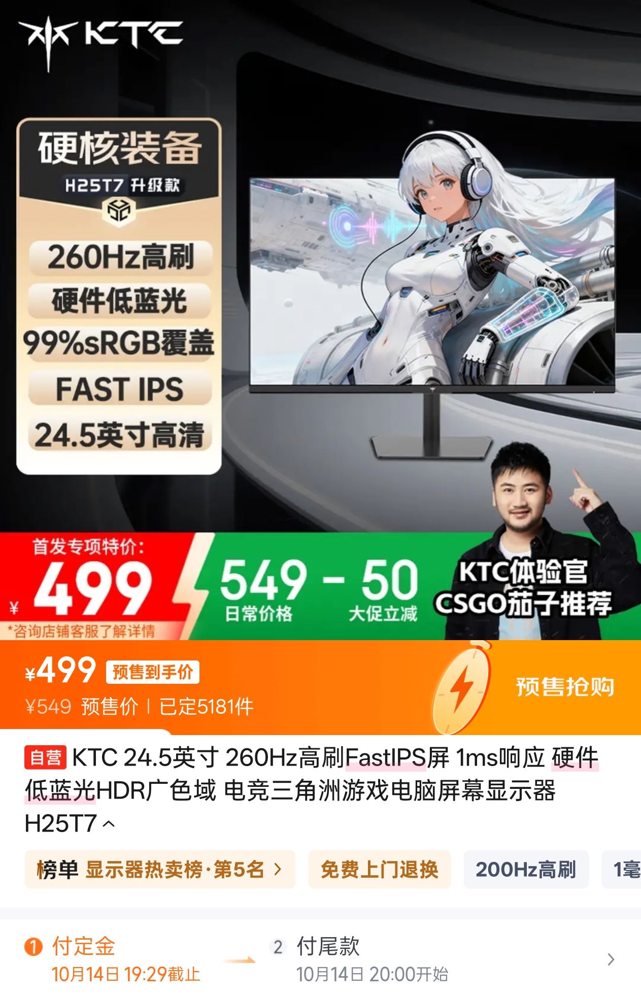 低价不卷王KTC先后在10日、11日发布H27E7S和H25T7升级款,先前618有多卷,现在双十一KTC就有多没诚意H27E7S首发849元,可谓毫无竞争力虽然采用了相同的模具和类似的名称,但H27E7S更像是上半年H27E7(京东方NF8面板)的降级版,由于更换了面板,导致刷新率(原生240Hz超频至275Hz)跟色域都有不同程度的缩水,甚至连之前颇受好评的双HDMI2.1接口也顺手给砍成了双HDMI2.0,更可惜的是,24.5英寸点对点缩放这个功能,一代而亡,并没有接续在H27E7S身上