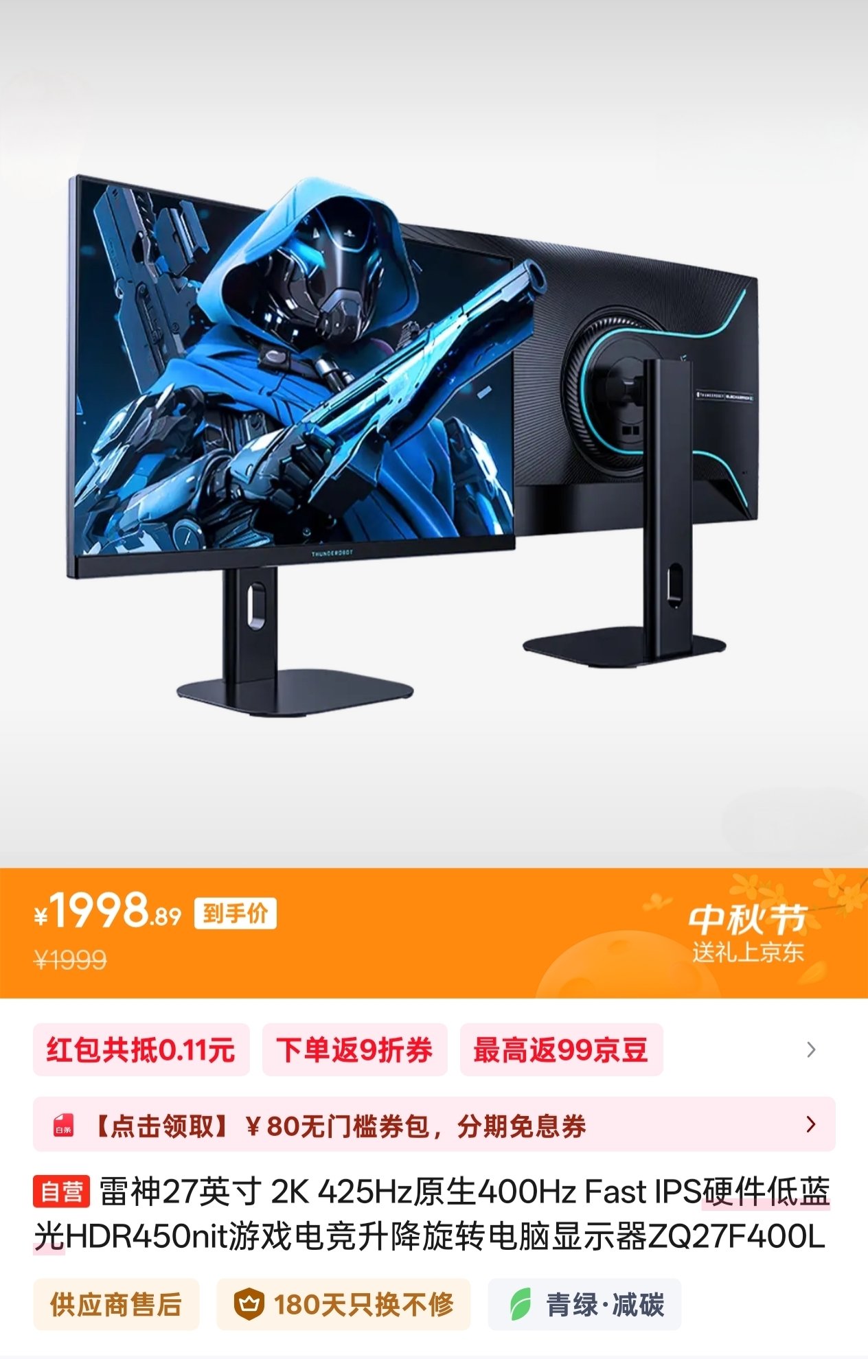 但是,但是!市场经常会有个但是这两年跟京东方勾肩搭背的雷神也在酝酿自己的双11新品计划——一款27英寸 2K 425Hz(原生400Hz)的Fast IPS显示器正于后台热身中,价格刚好也是2000元上下,巧了吗不是
