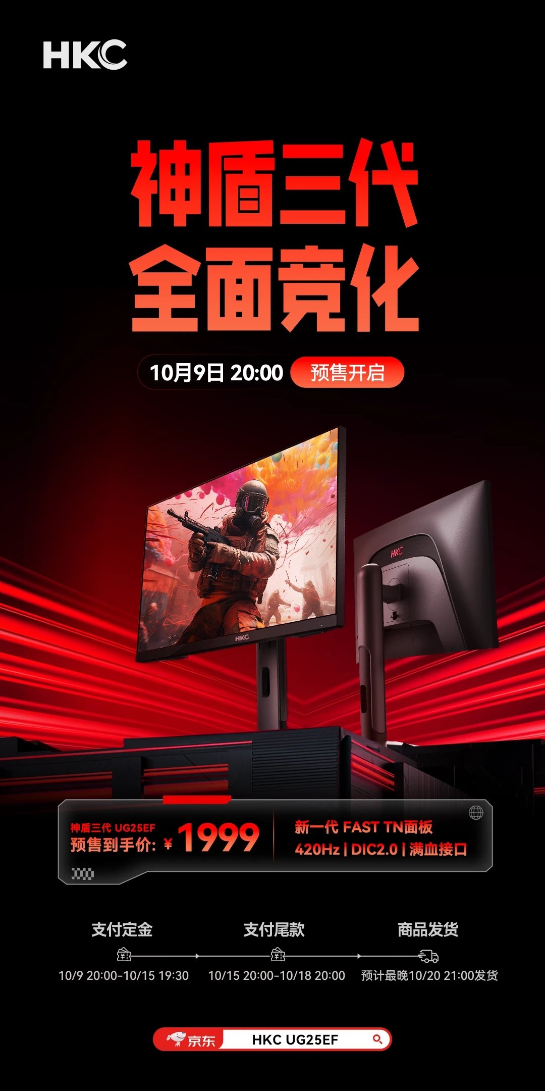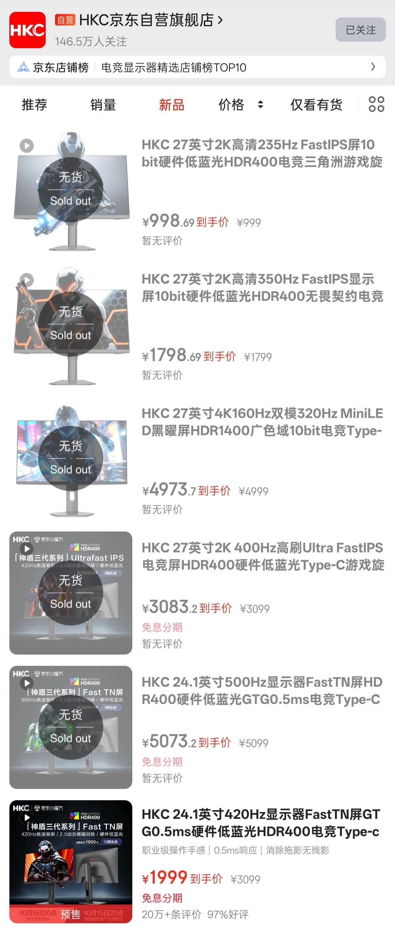 作为有一揽子上新计划的HKC,虽说只在9号推出了一款Fast TN屏显示器,但你看这堆正排队等候的各类新品,琳琅满目的,双11可期,未来可期哈