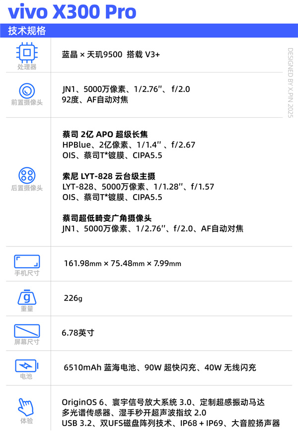 衆所周知,X 系列從 X100 Pro 的 1 英寸大底開始,影像就是同檔位的標杆;X200 Pro 的 2 億長焦更是把遠攝捲到了新高度,而這次藍廠在 X300 Pro 上也整了不少狠活。