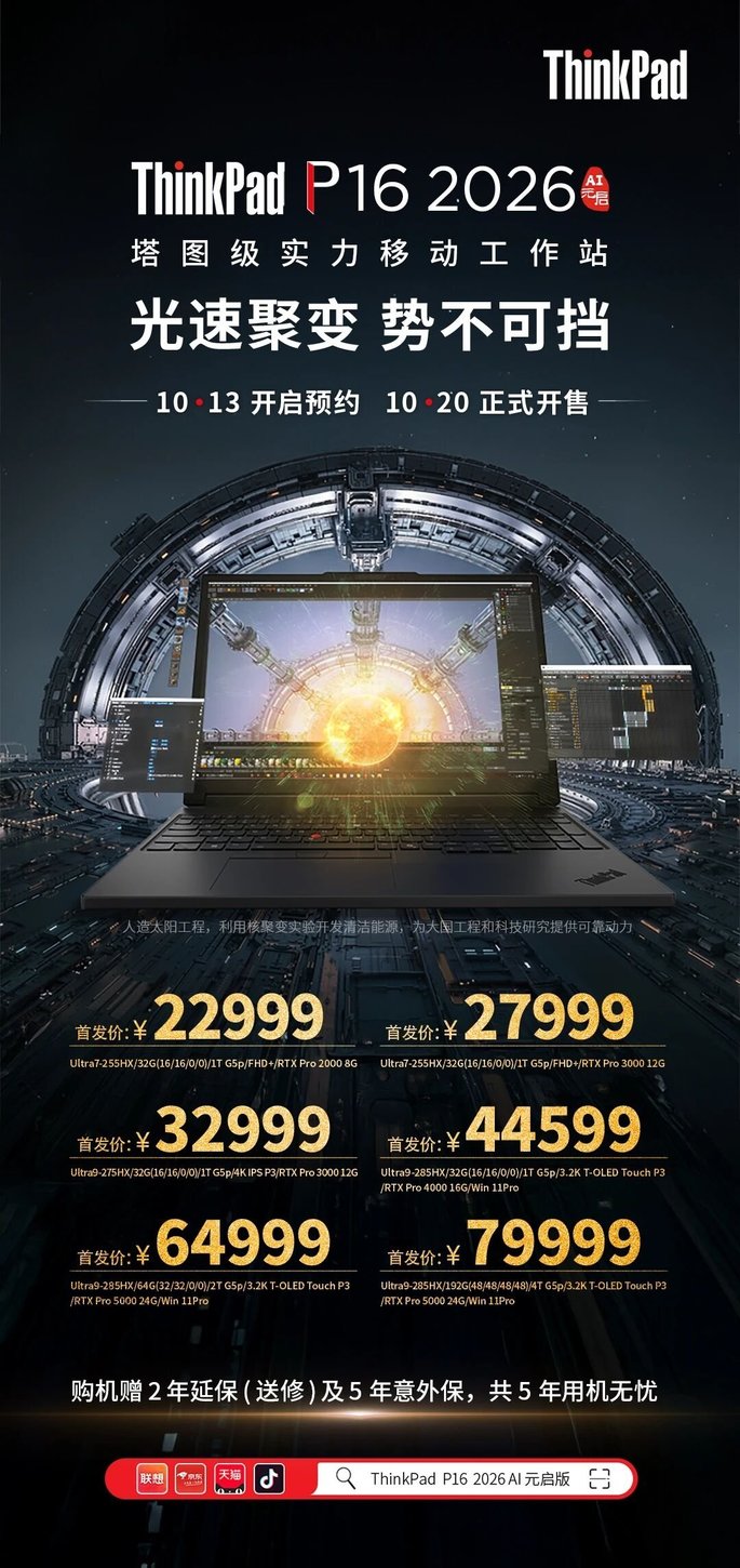 ThinkPad P16 2026 AI元启,10月13日开启预售。₍•ʚ•₎•ʚ•₎•ʚ•₎。