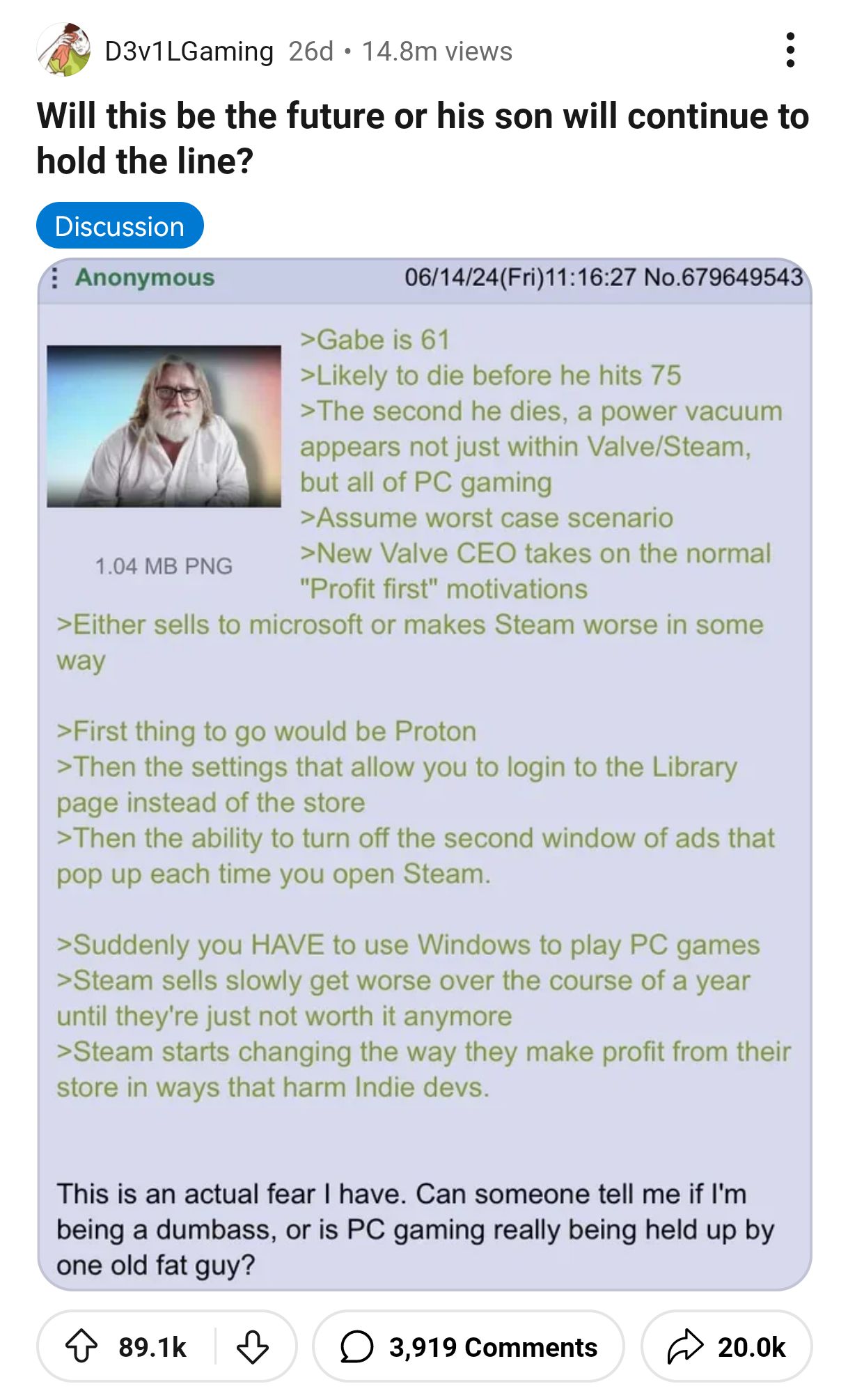 他去世的那一刻,不仅是在Valve/Steam内部,整个PC游戏界都会出现权力真空