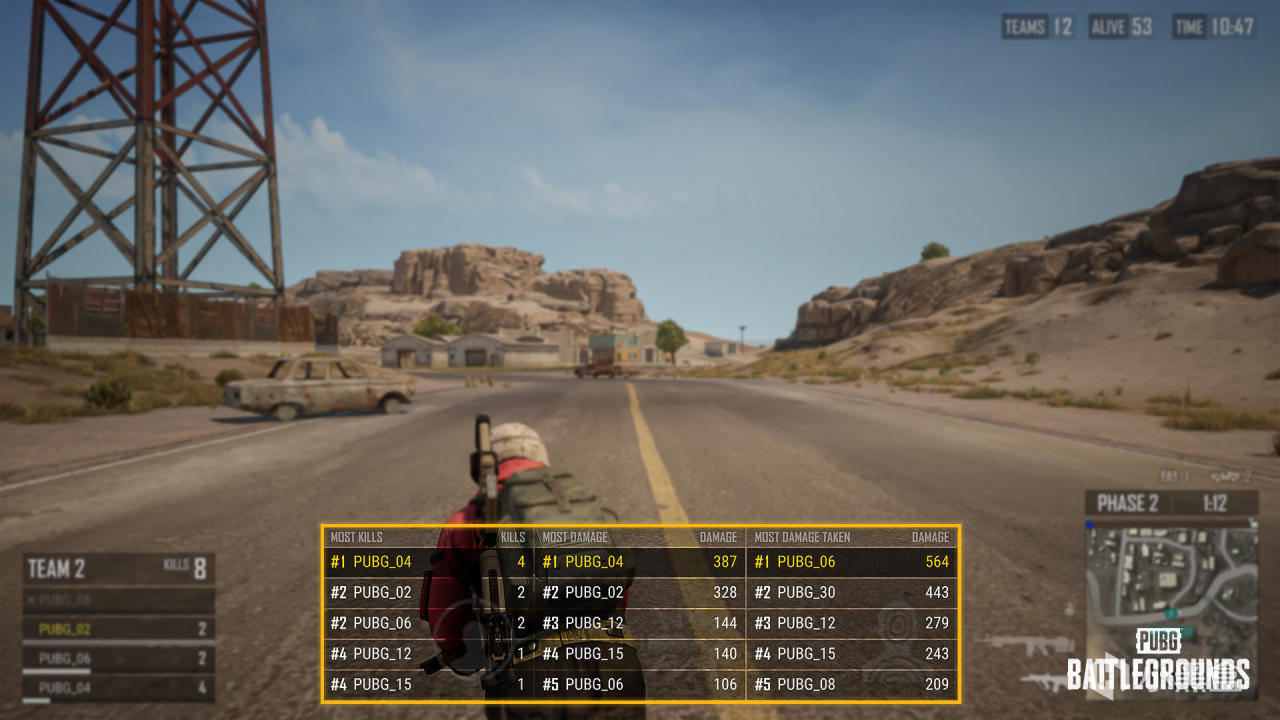 • 啓用新增“查看比賽排名”選項時,畫面正下方將顯示淘汰、傷害量和受到的傷害量等排名。
