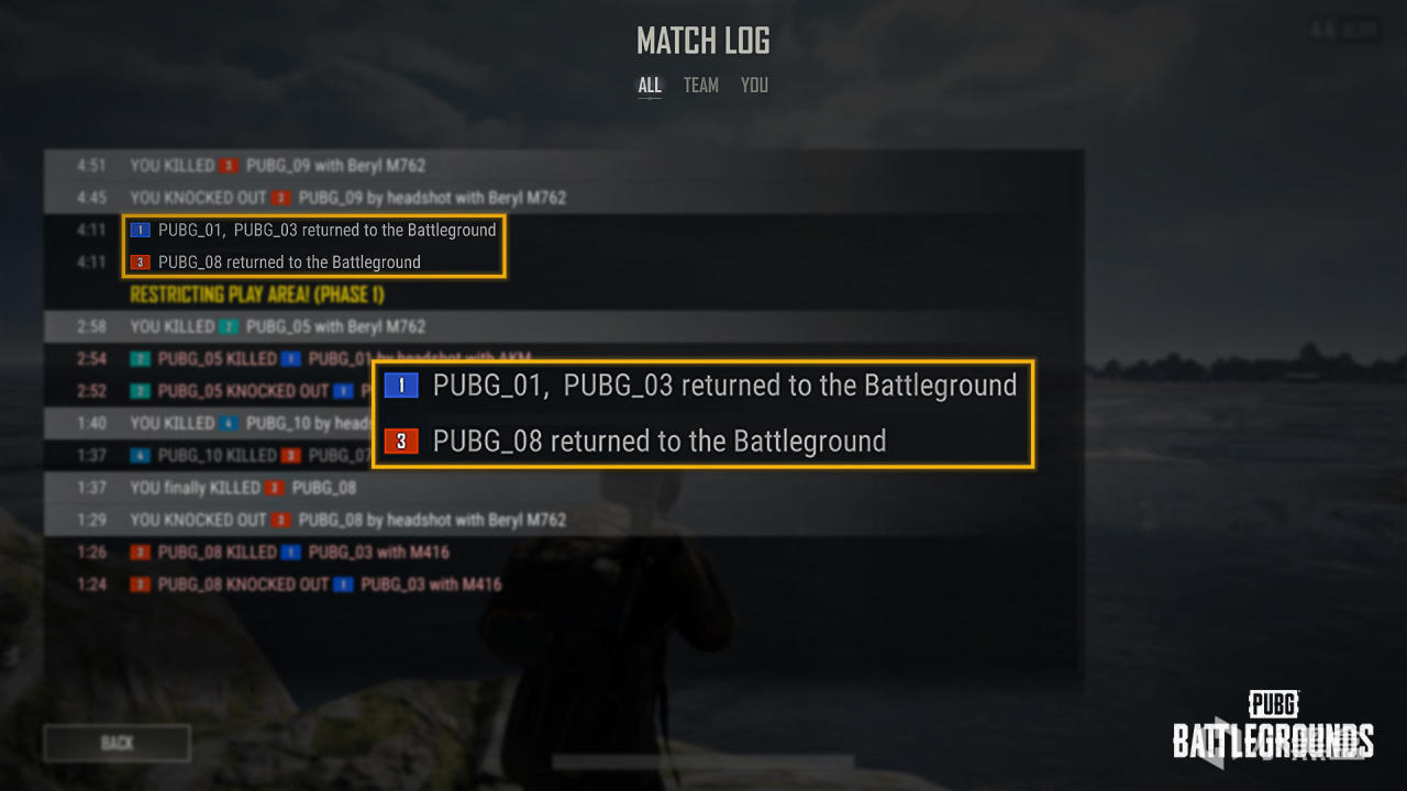 • 系統消息和比賽日誌中將會顯示重返戰場玩家的相關信息。