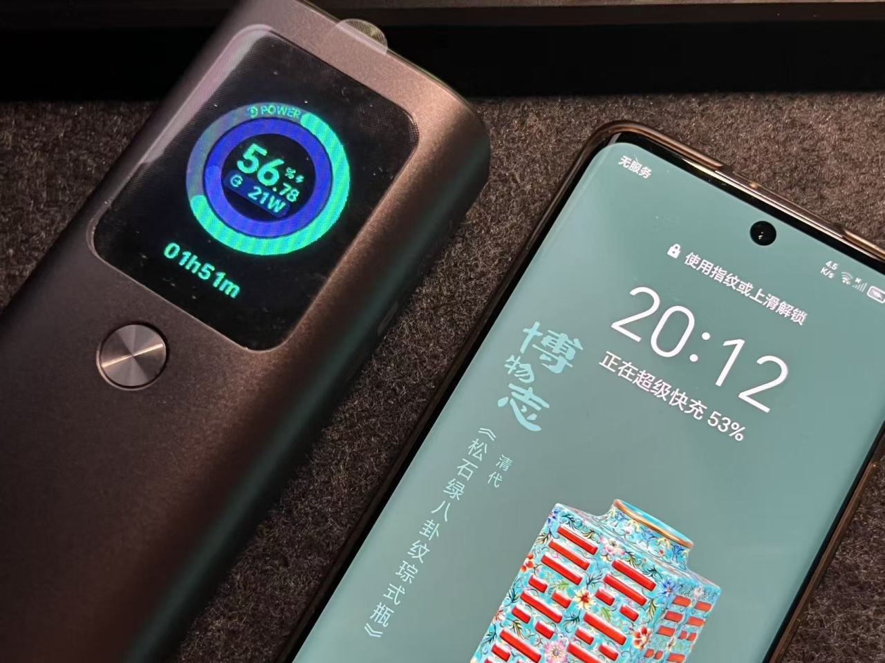 • 榮耀V40輕奢版支持66W超級快充,受華爲SCP私有協議限制,V20Pro能激活V40的超級快充,但功率只能維持在20W上下,中間亮屏還會降功率。從0充到80%用了約30分鐘前20分鐘左右電量能充到60%,30分鐘左右充到80%;80%後進入涓流階段,充電功率降至約10W上下,速度明顯變慢,花了不到20分鐘充滿。全程從0充到100%總共用了50分鐘不到