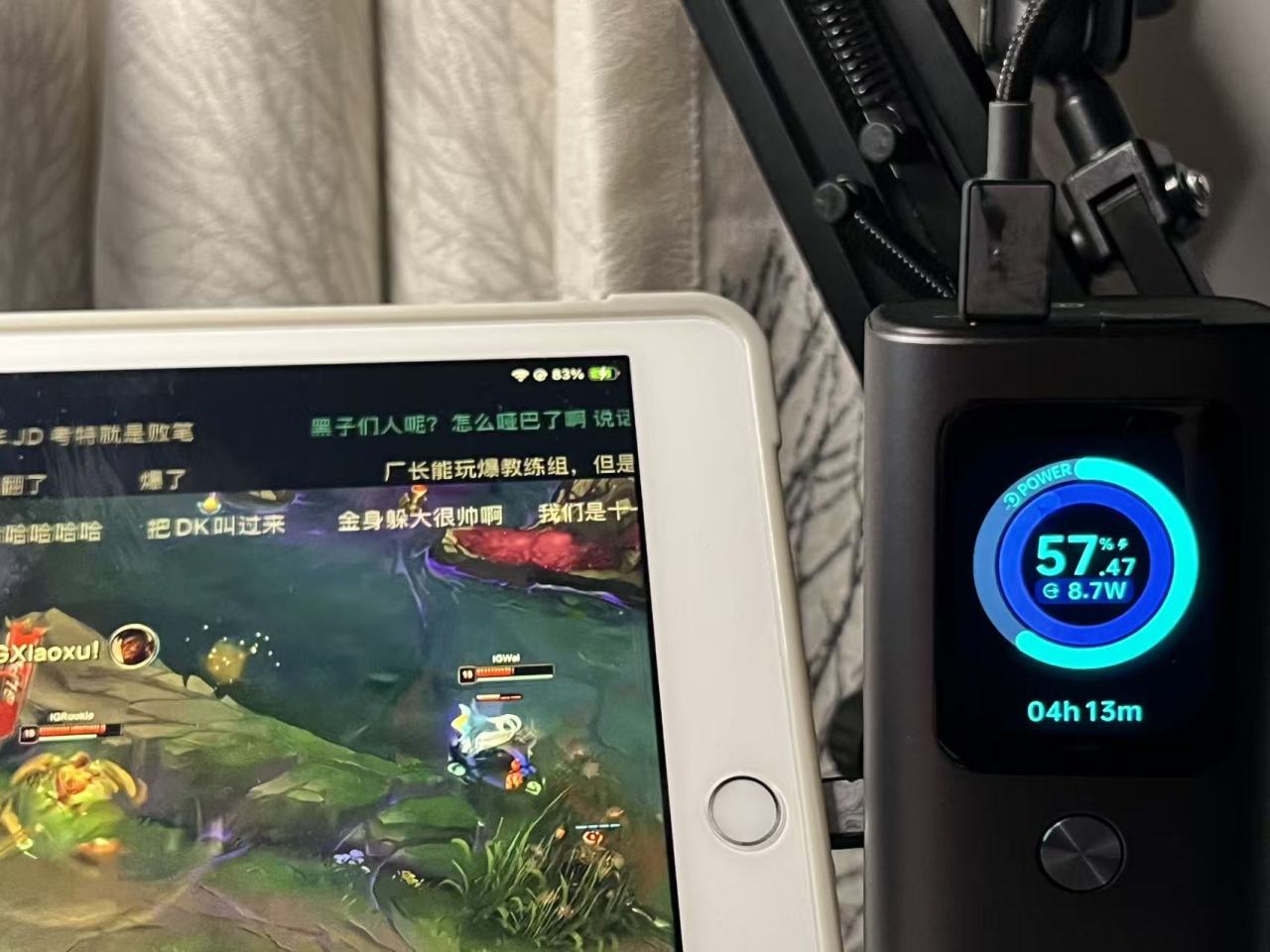 • ipad2020支持18W PD快充,用C口+C口轉Lightning數據線充到80%用了約2小時,功率穩定;80%後進入涓流階段,功率降至約10W上下浮動,速度明顯變慢,花了約1小時充滿;全程從0充到100%總共花了3小時出頭