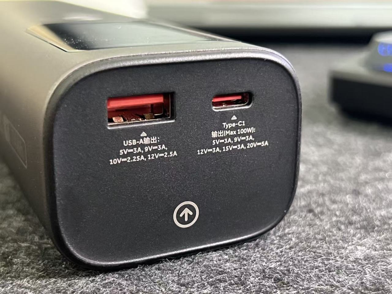 接口方面,上方一個C口一個A口,A口支持多種規格功率輸出,最大支持30w;C口同樣支持多種規格功率輸出,最大輸出功率來到了100w