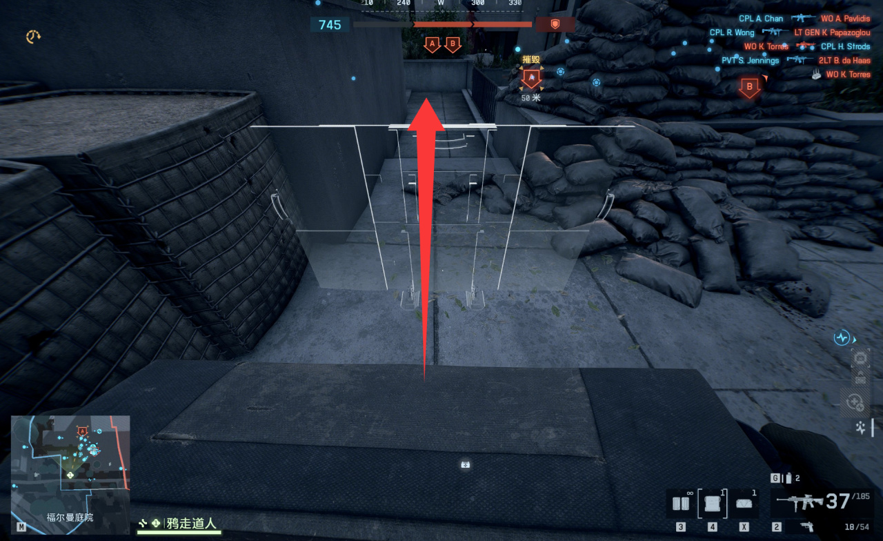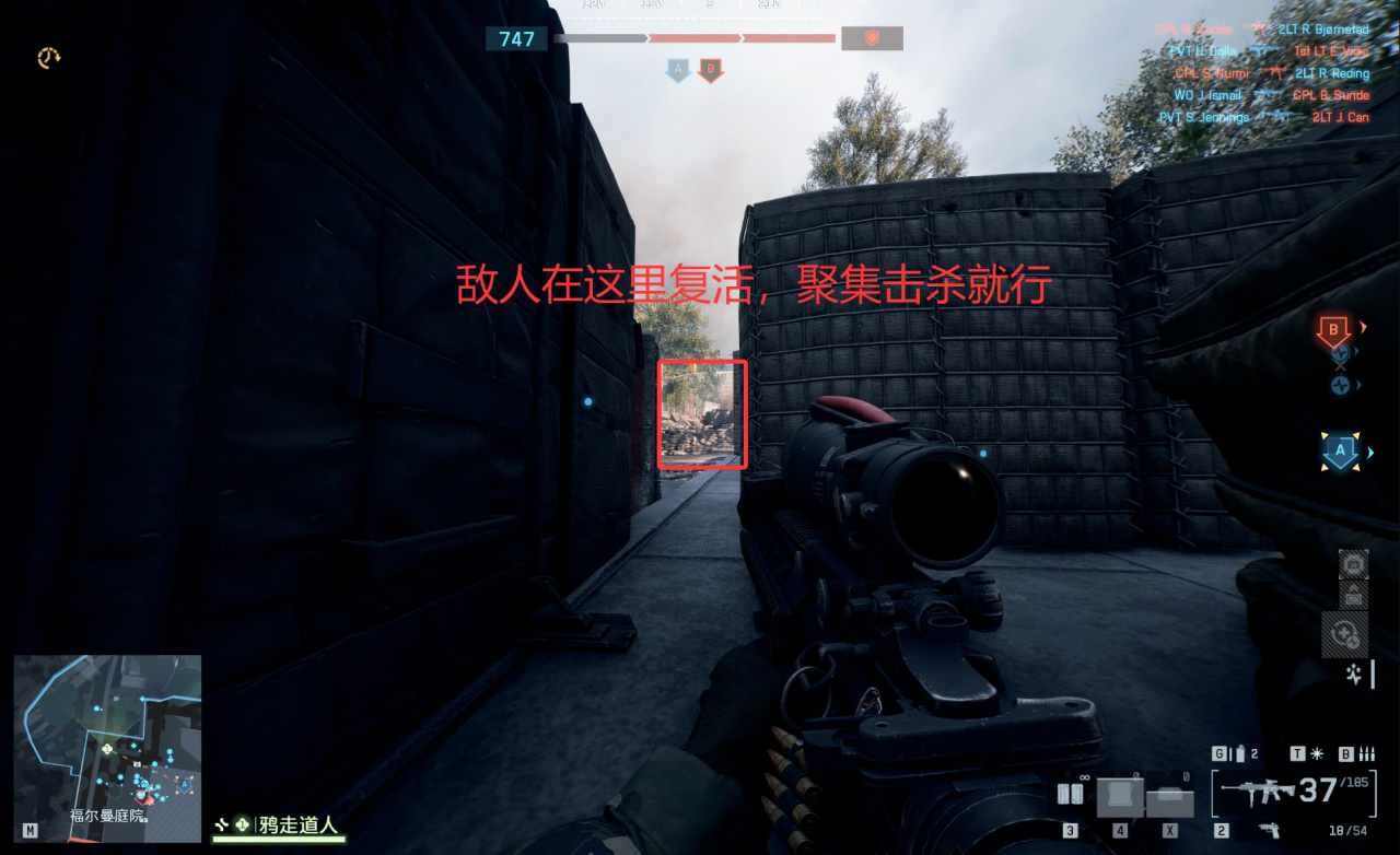 不过我个人更推荐放在右边防止被人机路过的时候过来肘击我们,接下来就是愉快的爬缝隙开始刷人机了。