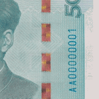 三透光,透光觀察票面左側空白處的水印圖案立體清晰,“100”“50”票面的正、背面局部圖案可精準對接,組成完整的面額數字和對印圖案。