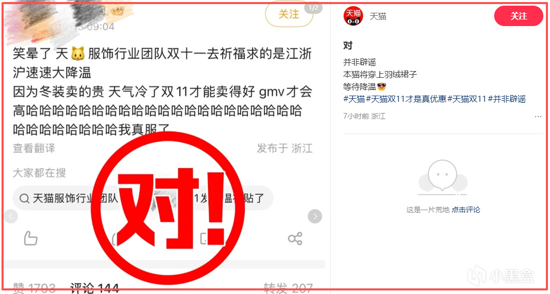 盒友们谁能想到,刚盼来的江浙沪降温,背后竟和天猫双 11 的 “小目标” 有关!(纯属娱乐,切勿当真)