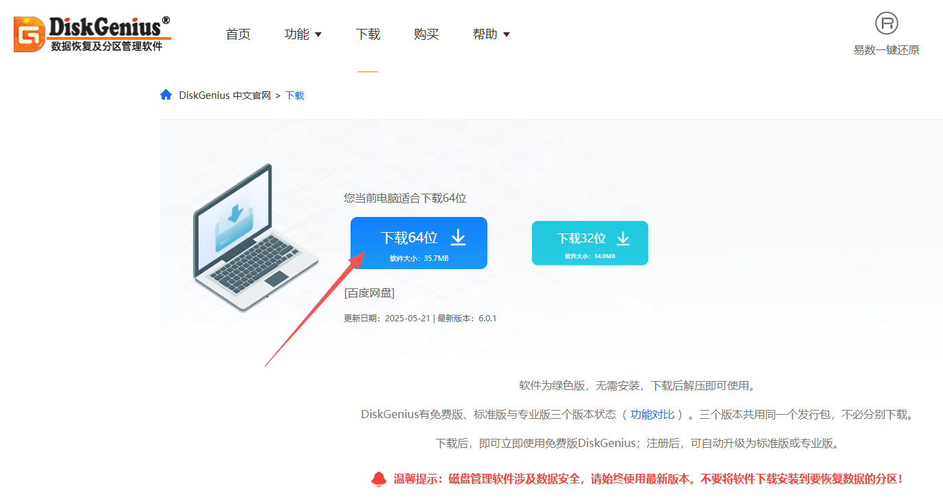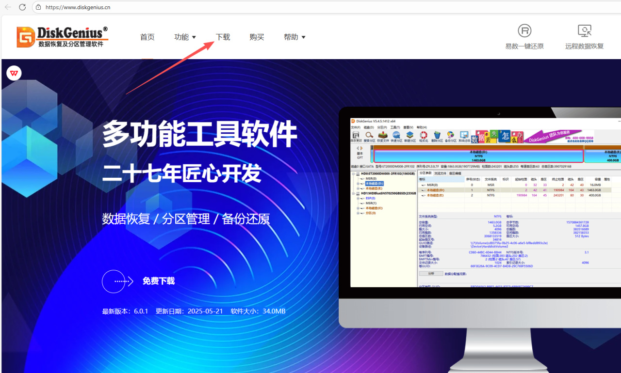 这里使用的软件是DiskGenius,网站https://www.diskgenius.cn/。