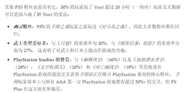 《对马岛之魂》自2020年7月发售后创下了令人瞩目的成绩。截至2024年,该作全球累计销量已超过1300万份(含PC版),成为PlayStation平台的重要里程碑作品。Rhys Elliott指出,销量差距可能源于PS5与PS4的装机量差距。《羊蹄山之魂》的玩家群体呈现出明显的核心化特征。数据显示,购买本作的玩家中高达93% 曾体验过《对马岛之魂》,30%的玩家有过《只狼:影逝二度》的游戏经历,另有27%曾游玩《刺客信条:影》。