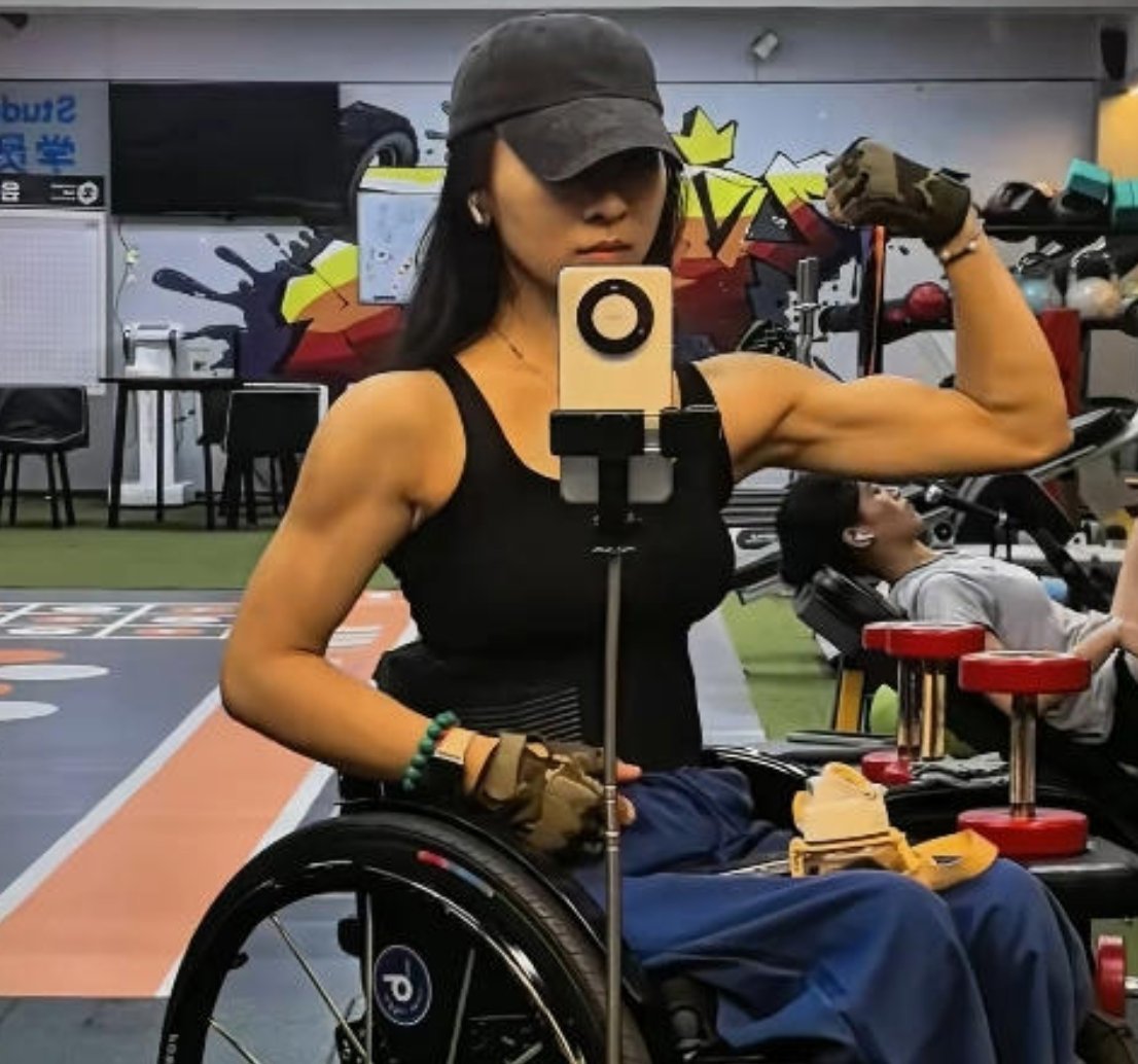 面對人生鉅變,黃同學沒有放棄,在休學一年後,她於2024年坐輪椅重返校園,並在2025年2月重啓健身訓練。憑藉車禍前就打下的健身基礎,她將訓練重點放在上肢,經過8個月的高強度復健,取得了驚人成果。80公斤高位下拉是黃同學訓練的驚人成果之一。她用自己的行動證明:“輪椅不是枷鎖,真想做的事,你總能做到。”