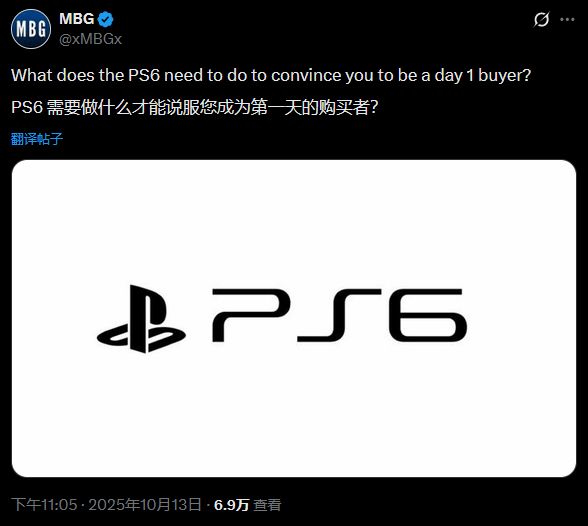 近日,MBG 在其平台上向粉丝提问:如果要在 PS6 首发阶段入手,主机需要具备哪些条件?该提问迅速在玩家圈获得大量回复,网友纷纷围观。