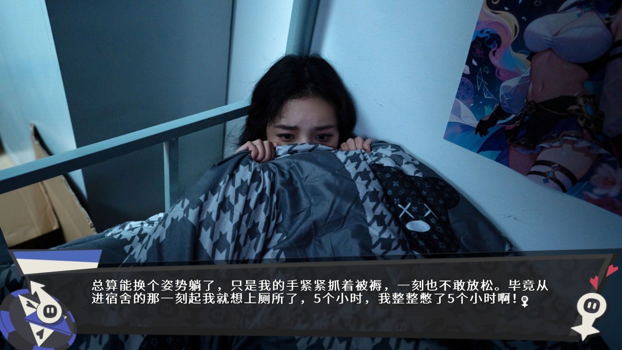 综合体验下来,本作真人的演出形式我并不感到反感,反而感到新奇,外加上demo的整体表现很好,成功拨开了我心中的那顶乌云。可以看出,本demo的主要描写内容多为主角性转后的各种心理描写,不得不说演员的表演与配音都非常到位,不知道的还真以为演员就是这么变的。并且,本作虽说是“静态”的视觉小说,但实际体验并非完全静态,游戏在一些关键剧情节点选择播放“过场动画”——直接播片,外加上平时选项中也经常出现一些qte的互动环节,让整体体验变得非常丝滑且动态。