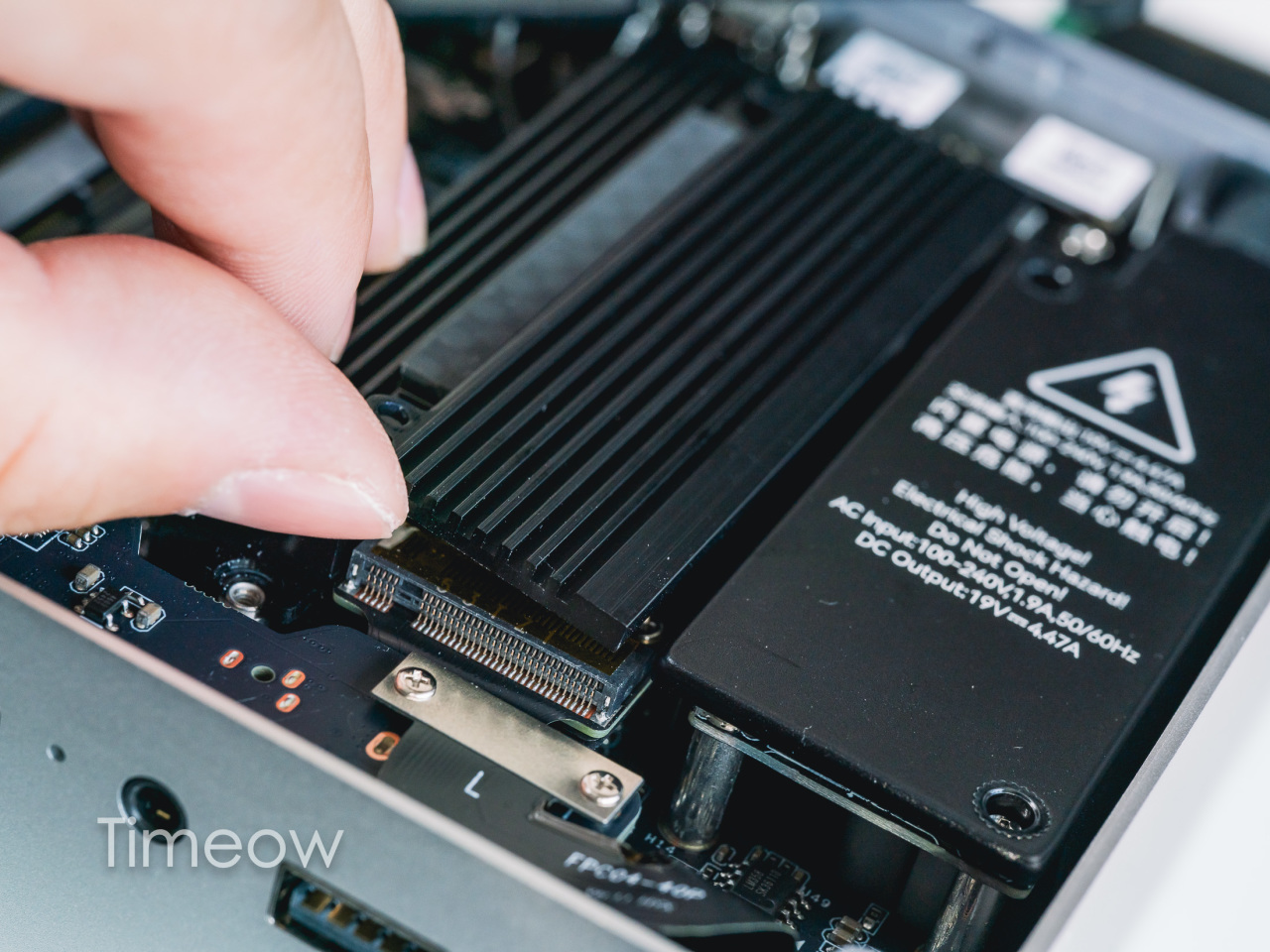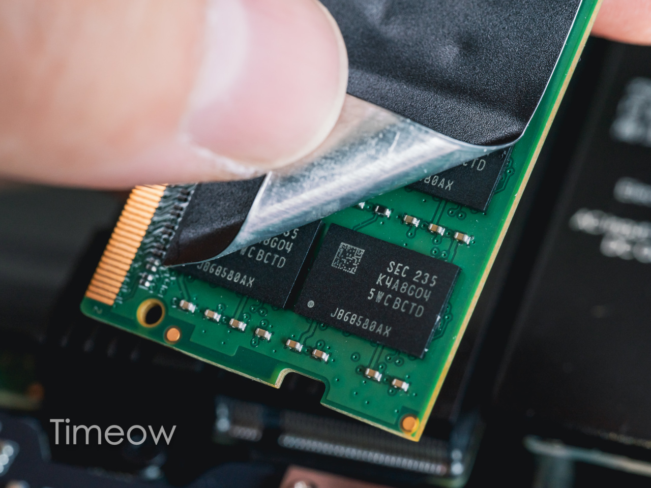 SSD表面有金屬散熱器,卸下螺絲可見一個空閒的M.2插槽,可以額外增加一根NVME固態硬盤,輕鬆擴容。