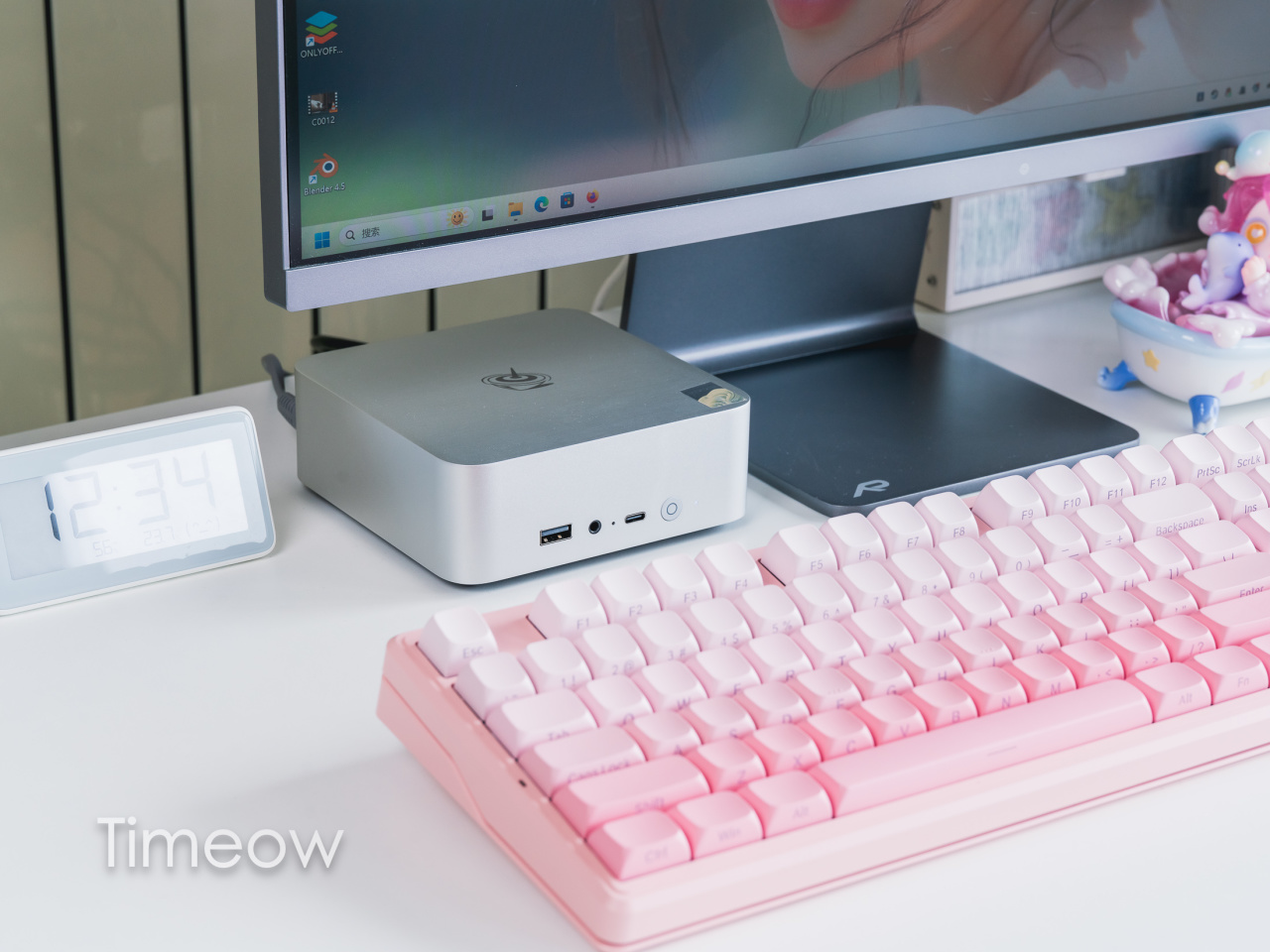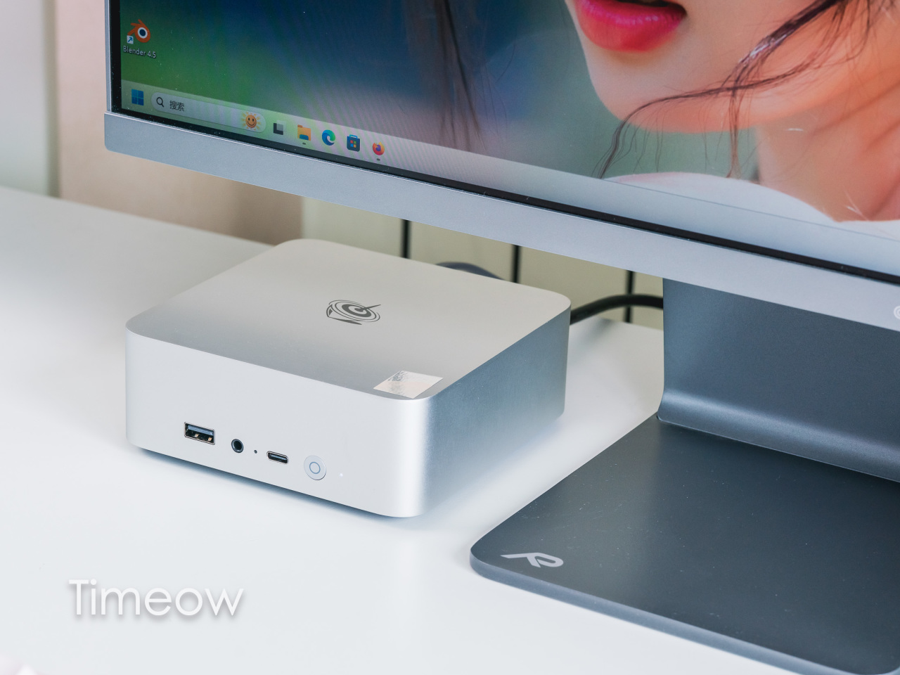 整體視覺效果很清爽,而且也不會突兀,其金屬外殼自帶科技感之餘、更能融入到各種桌面環境或客廳風格中,更不會像傳統臺式機一樣遮擋視線和光線,讓桌面更簡潔。