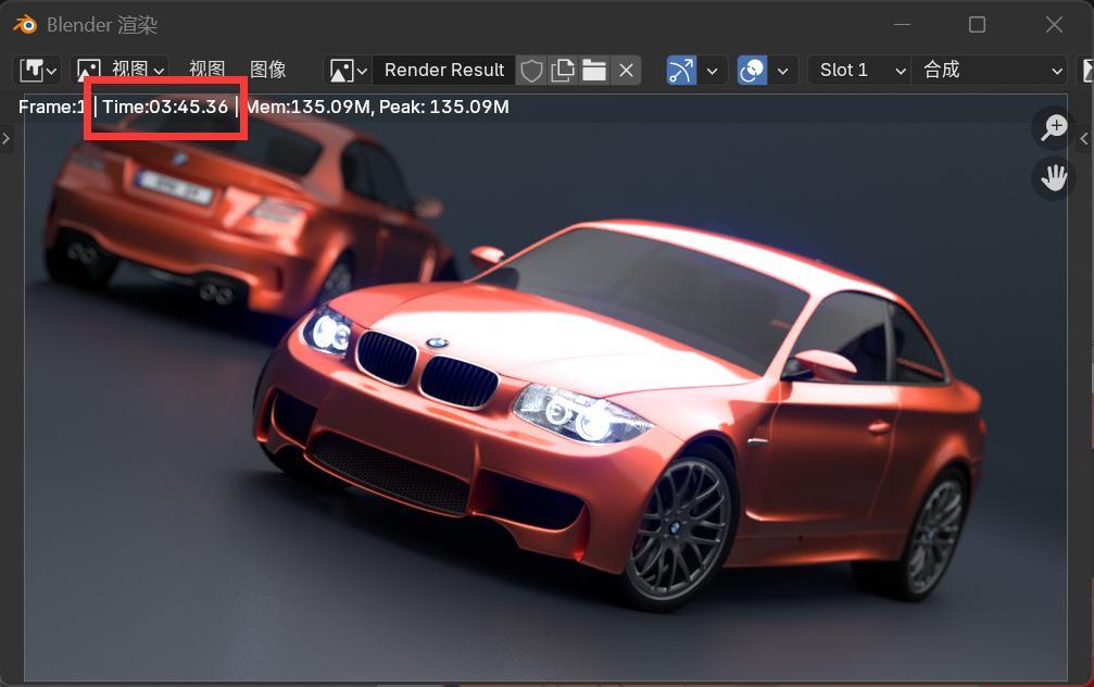 在Blender軟件裏,用官網提供的Car Demo的CPU渲染。