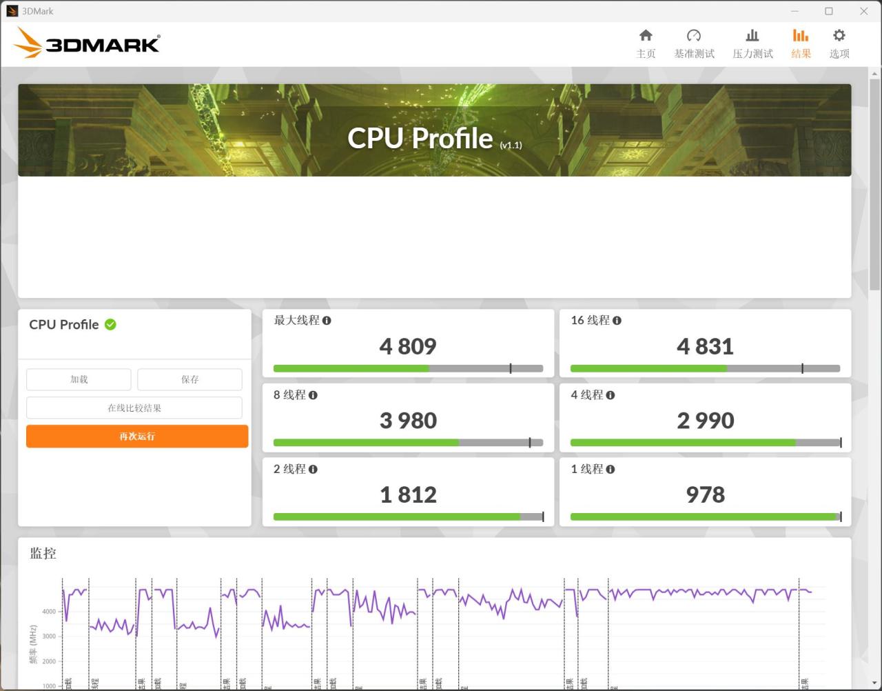 單線程得分978,多線程得分4809—這個成績意味着整機的性能水平屬於中高端,尤其是單核性能非常亮眼。