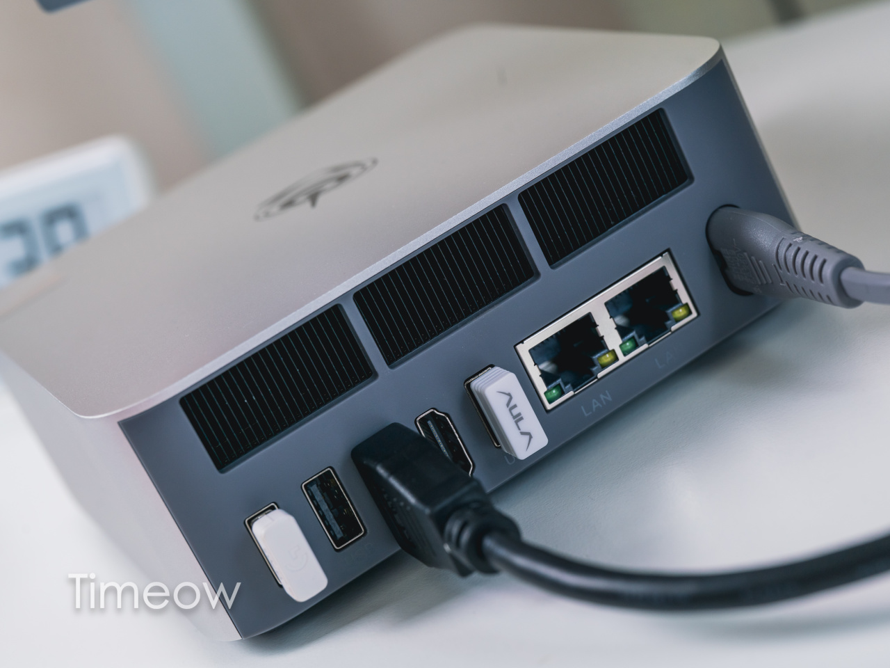 後置雙1000M以太網口、雙HDMI視頻接口、雙USB 3 10Gbps+USB2.0接口,可謂能給的都給了。雙網口可以輕鬆搞軟路由、鏈路聚合;雙HDMI輕鬆打造雙屏辦公;更多的USB接口方便咱們連接無線鍵鼠和移動固態硬盤等設備,佈局合理且數量管夠。