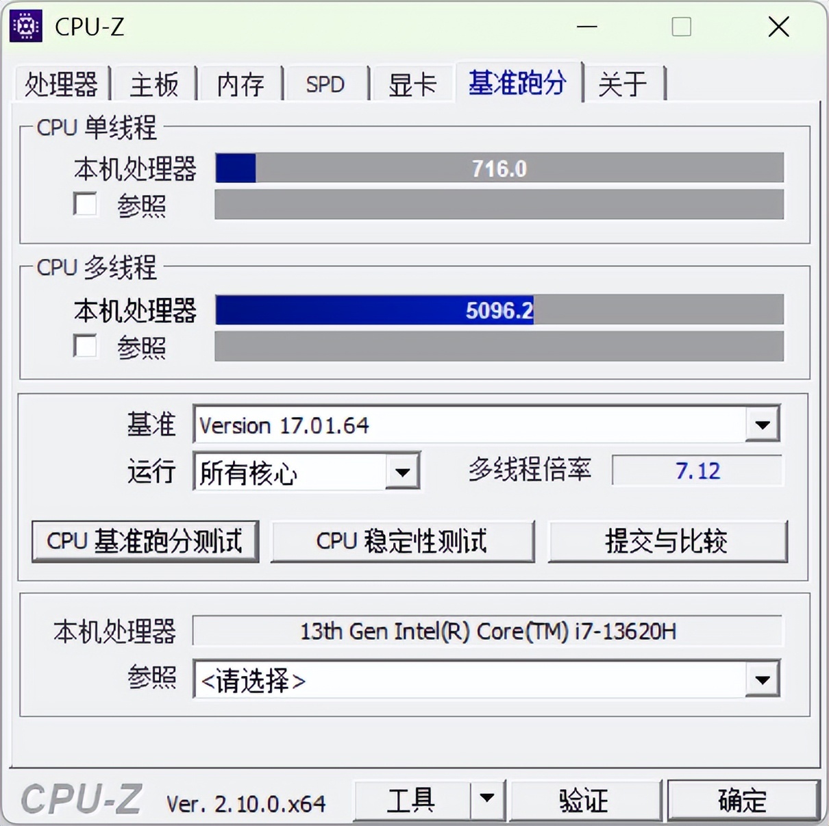 EQi13 Pro的CPU-Z跑分如上,單核716、多核5096: