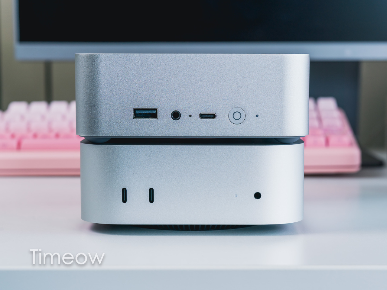 做工方面,它的邊緣圓潤無毛刺,最關鍵的是,邊緣不像Mac mini那麼鋒利、拿捏的很好,日常拿取不割手、也減少了磕碰時對其他設備造成的傷害。