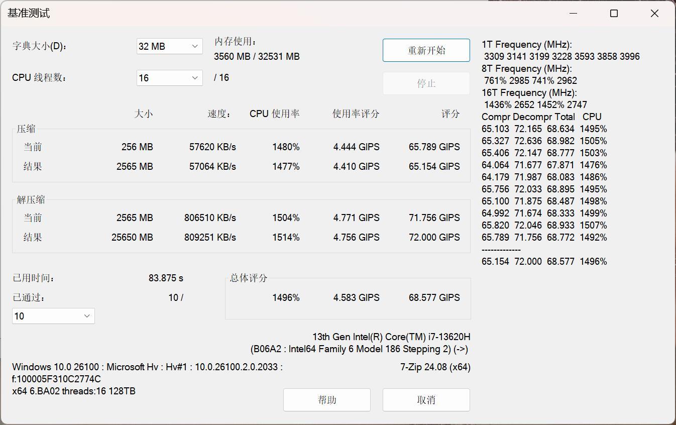對於日常辦公來說,7-ZIP基準測試代表了整機的生產力性能,成績與CPU和內存性能強相關。
