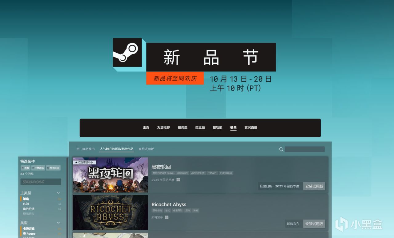 今天打开Steam新品节榜单,发现我们在人气蹿升榜的卡牌肉鸽游戏里排名第一了!!
