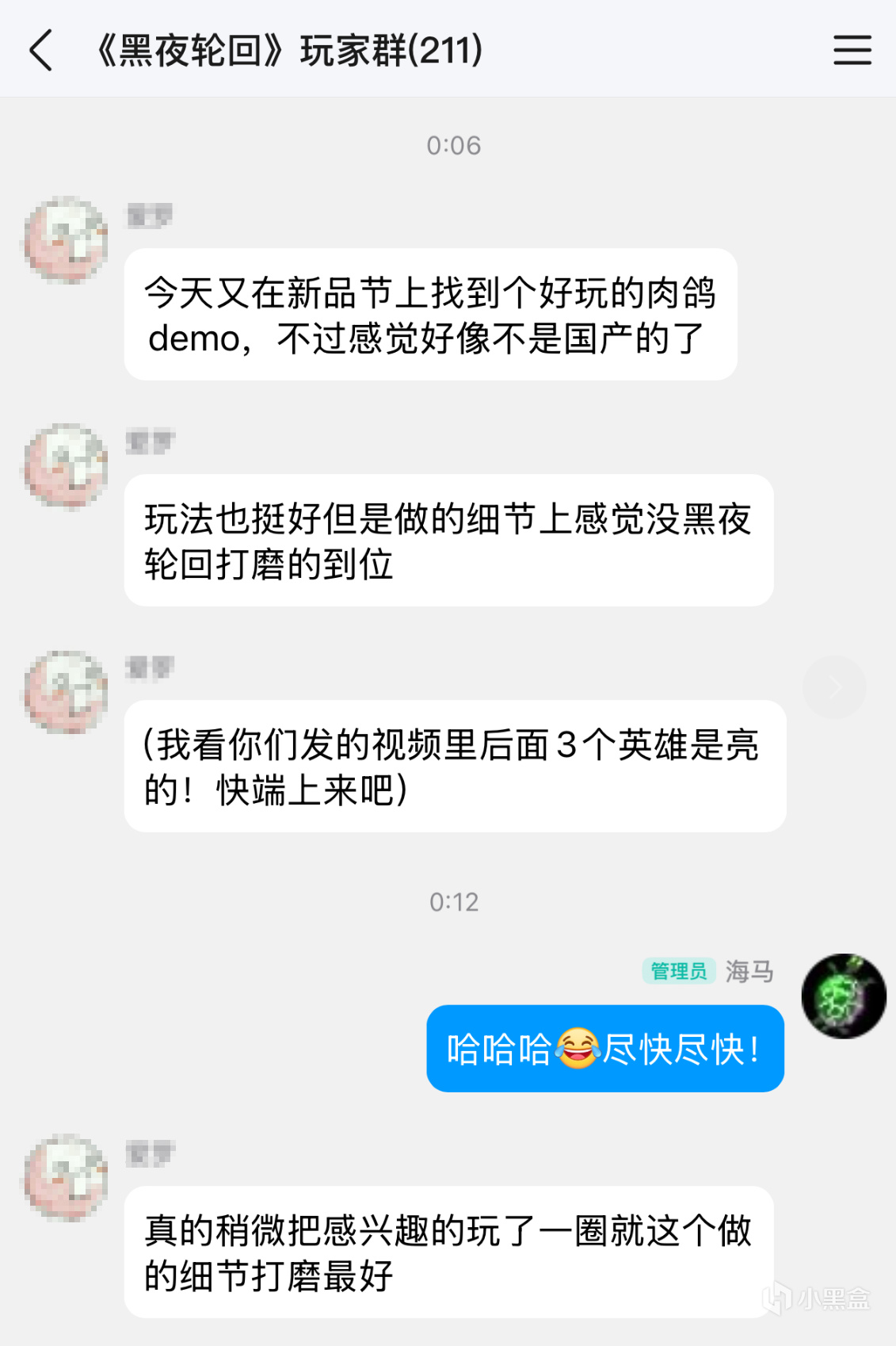 我们的玩家群里也有玩家在玩过一圈新品游戏后,回来对我们给出了超级好评——